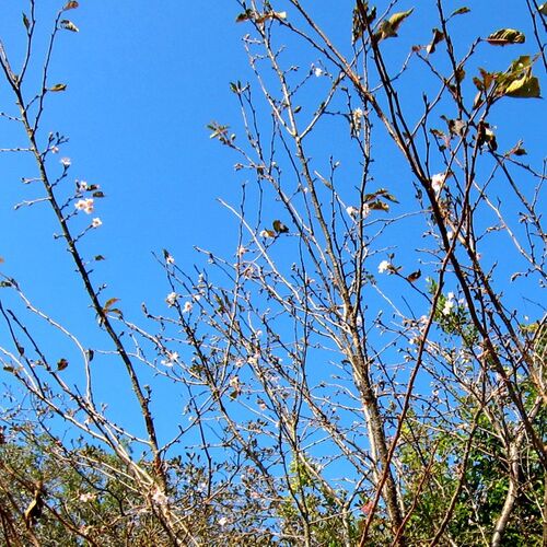 *[山荘便り][作業日誌その164] 例年のことだがジュウガツザクラが花の数は少ないが けなげに咲いている、実はならない、不思議な現象である。春にも咲くけれど、サクランボがなったのは見たことがない。虫も来ないので静かに咲いている。10月27日(日)曇り…