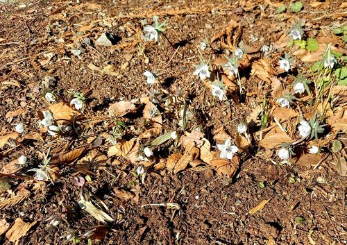 道端のセツブンソウ いつも散歩している遊歩道の道端に 待っていたセツブンソウが咲きだした。 今年は咲かないのかなと心配していたのだが それまで何にもなかった地面に ポツリポツリと芽が出てきたと思ったら みるみる一斉に咲きだした。 今年も無事に咲い…